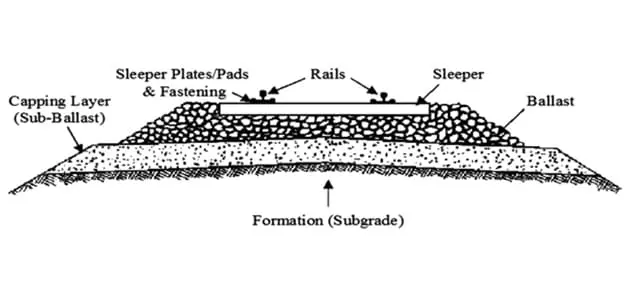 - Kegagalan fondasi: Tanah dengan daya dukung rendah (<300 kN/m² di lapisan atas) tidak cukup menopang struktur ballast/sub-ballast.