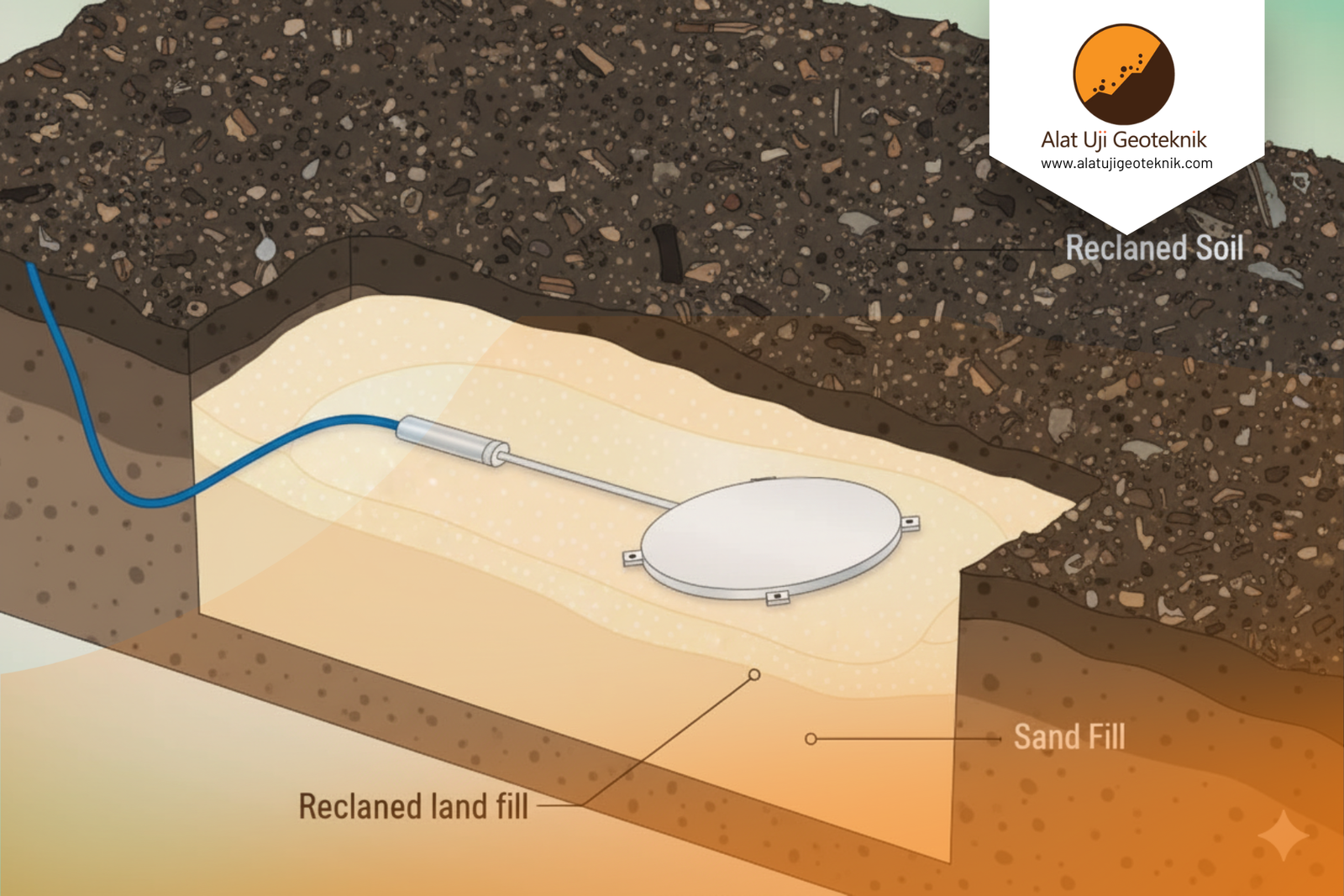 Penimbunan jalan, reklamasi dan abutmen jembatan: Pressure cell mengukur perubahan tekanan pada tanah timbunan untuk memastikan kestabilan dan daya dukung struktur.