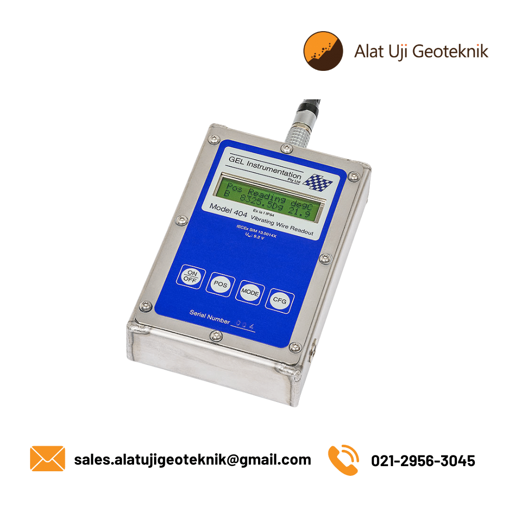 Intrinsically Safe Readout (VW) | Model 404 adalah alat baca genggam portabel yang hemat energi. Alat ini dirancang melalui kerja sama dengan GEL Instrumentation dan bisa digunakan terus-menerus selama lebih dari 6 jam dalam sekali pengisian baterai (recharge). Model 404 ini dibuat khusus untuk membaca sensor vibrating wire GEOKON di lingkungan yang berbahaya atau berisiko tinggi (memiliki sertifikasi keamanan IECEx ia). Alat ini hanya boleh digunakan untuk sensor GEOKON tipe tertentu, yaitu Tipe 1, 2, 3, dan 4.