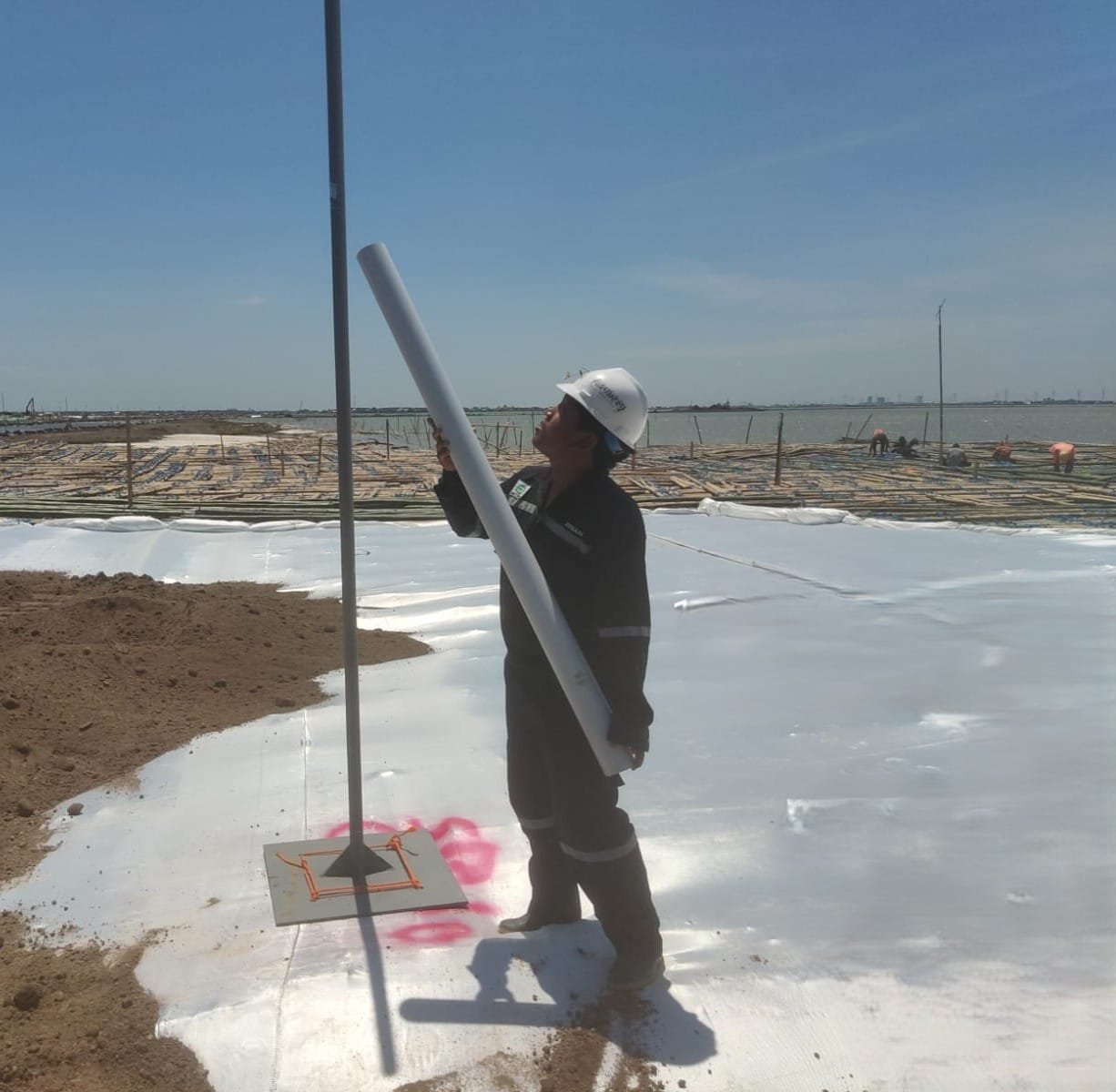 - SP dipasang dipermukaan tanah yang akan ditimbun.